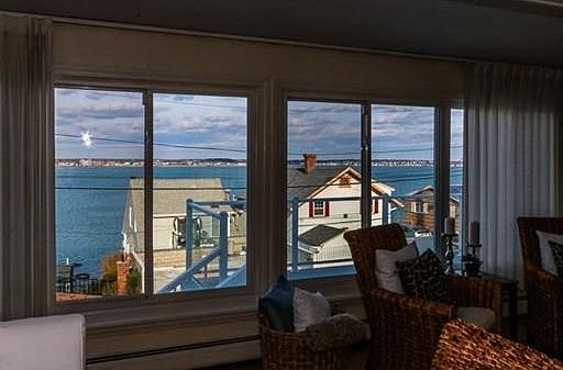 A rare find! This is what everyone is looking for! This house features a large open floor plan with Bamboo flooring, dramatic stone fireplace and a wall of windows overlooking the Atlantic. Updated kitchen has maple cabinetry, granite counters, tumbled marble backsplash, touch 20 faucet, with separate laundry closet, full bath with oversized, walk-in shower perfect for a quick rinse from the beach. Rear patio connecting the living room and kitchen make it a great house for entertaining! Master has a wall of windows with sweeping ocean views over the rooftops toward Marblehead. 2 more additional bedrooms with full beautiful updated bath and brand new rooftop deck complete the package.