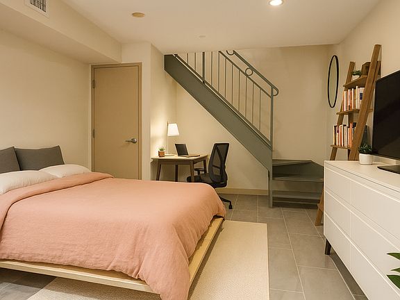 Downstairs, the private suite offers a warm, quiet retreat with an inviting layout and ample space for both rest and productivity. The flexible lower level easily accommodates a home office, studio, or guest area, enhanced by clean architectural lines and subtle modern touches.