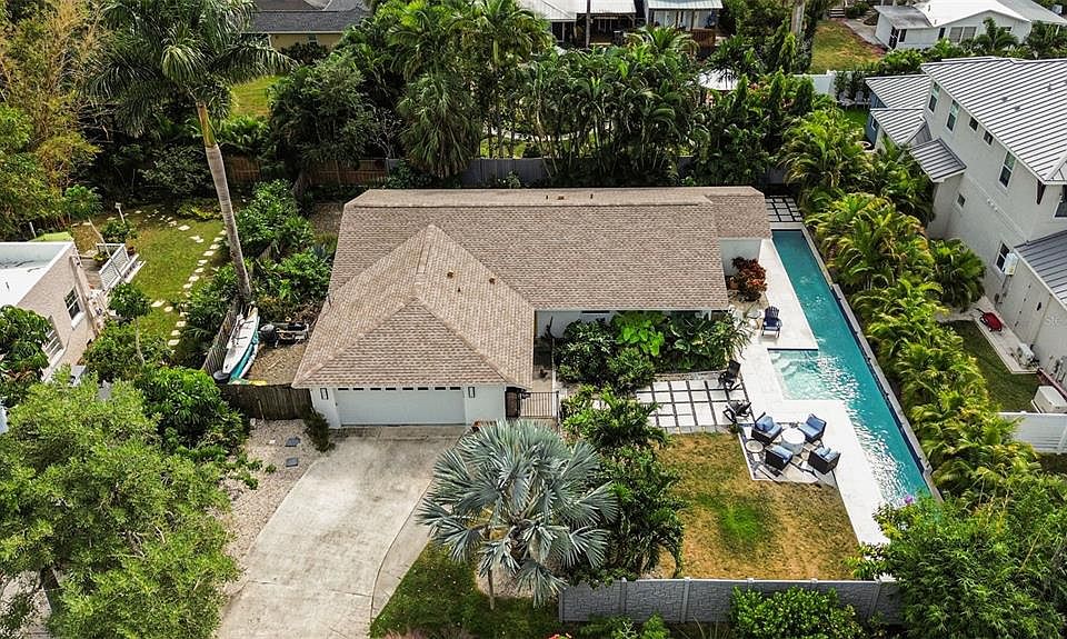 Alert! An outstanding WEST OF THE TRAIL gem has hit the market! This lavishly maintained and updated property is located in one of the most prized neighborhoods in Sarasota! Within easy biking/walking distance of the fine dining, boutique shops, farmers markets, cantinas, and art galleries of downtown Sarasota, this home provides a one-of-a-kind way to experience the best that Sarasota has to offer! This home has seen many improvements over the years. You will notice the brand new kitchen with state-of-the-art appliances, as well as the renovated bathrooms, impact windows and doors for peace of mind, as well as a new roof only a few weeks ago, this October 2025, and of course, the iconic gunite salt-water heated lap pool! The home is equipped with a whole-house water filtration system as well as an irrigation system; neither you nor your beautiful garden will go thirsty! Thoughtfully designed exterior features landscaping for privacy in the backyard, as well as a lovely courtyard-style patio by the pool, and finally, the 1.5-car garage is equipped with a 220 outlet for EV charging. Whether you’re enjoying the sun-filled mornings by the pool or taking a walk to the Bayfront for a cocktail at sunset, this home in the heart of Sarasota is the lifestyle you’ve been waiting for!