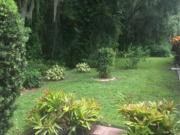 Very private backyard backing up to the Nature Conservancy property with jungle and natural Florida landscaping.