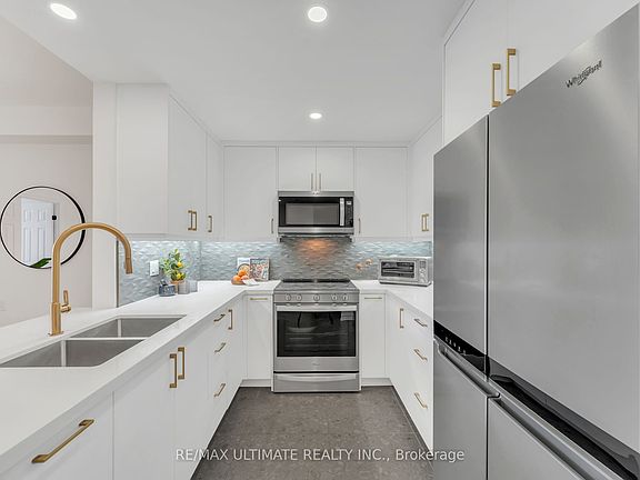 Recently remodelled custom kitchenSleek white cabinetryGold accentsBeautiful backsplashBuilt-in stainless steel appliancesPrimary suiteGenerously-sized bedrooms