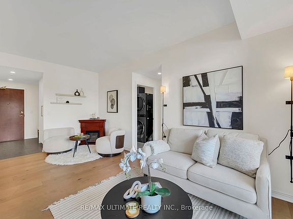 Welcome to THE BRAXTON In The Heart Of Leaside! This Stunning & Rarely Available 3 Bedroom, 2 Bathroom suite with 2 parking spaces and 1 locker is sure to check all your boxes! Enjoy 1,354 sq. ft. of stylish yet functional living in one of Torontos most coveted neighbourhoods. Upon entry, you're greeted by a welcoming foyer that opens to a sun-drenched and panoramic open-concept living and dining area ideal for casual mornings coffees or evening gatherings entertaining with family and friends. The spacious living area also allows for the perfect cozy corner fireplace/reading nook to curl up with your favourite book. The recently remodelled custom kitchen is a true showstopper, featuring sleek white cabinetry, gold accents, undermount lighting, beautiful backsplash, built-in stainless steel appliances, pot lights w/dimmers creating the perfect ambiance at all times. The primary suite is a true retreat, offering dual double-sided closets with custom built-ins, renovated 3-piece ensuite bathroom & built-in roller shades with additional blackout coverage. Two additional generously-sized bedrooms offer flexible space for a home office/yoga room, guests or kids playroom. This thoughtfully updated suite features a beautiful wide-plank light oak flooring throughout, large ensuite laundry room with ample storage and a walkout to large balcony. The Braxton is an intimate and well-managed building with only 52 suites, ensuring peace and tranquility. Amenities include gym, party room, visitor parking and an outstanding on-site superintendent from Monday to Friday. Situated in Leaside, one of Toronto's most desirable neighbourhoods you will have access to top-rated schools. Steps to Bayview shops, cafés, and restaurants, LRT station coming soon right across the street for ultimate transit convenience.