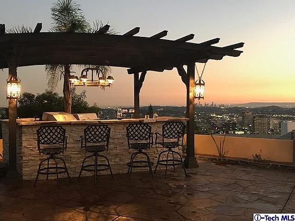 This elegant hill top house offers a spectacular view on one of the best view streets in glendale's prestigious neighberhood. Offers privacy, tranquillity and a true sense of serenity with stunnings view of Downtown LA from every turn. Elegent wrought iron double entry doors welcome you to a spacious single level and well designed floor plan with beautiful open interior space filed with natural light. A gourmet kitchen with proffessional appliances, granite counter tops and custom cabinetry. The Master bedroom with stunning views offers a spacious layout with an oversized master bath with dual shower heads and a bath tub to unwind.Enjoy the sunset and the fantastic view in the comfort of your private backyard which features a custom wet bar with a built in BBQ and a fire pit. This house offers a climate controlled two car garage with built in cabinets, professional True beverage cooler for entertainment.
