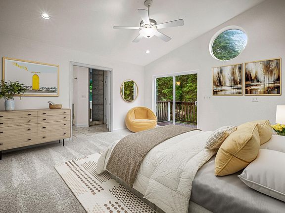 This lovely farmhouse styled, single level home exudes storybook charm for the multi-generational or income producing buyer. Private & nestled in mature, low maintenance landscaping this home has a presence that photos just can't quite capture. The primary house features a spacious great room concept with access to the front and side porches for a connectedness to the beautiful natural setting. Three bedrooms, 2.5 baths and an interior laundry room round out this freshly painted 2,167 +/-sf home with new luxury plank flooring. And there's more....on the basement level of the house - only accessible from the outside is a 1 bd/1b 600+/- sf studio space for artists, guests, a home theatre or gym? Above the detached 2 car, extra deep garage is a terrific 600 +/-sf 1 bd/1ba studio apartment with interior access -it's been freshly painted & new flooring. Enjoy a little energy independence with a Generac generator, a wood stove and OWNED solar!