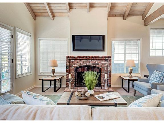 This wonderful entertaining home is ideally located in the highly sought after Golden Triangle area of North Redondo Beach. Upstairs, high vaulted wood beam ceilings welcome you to the open and airy living room, dining room and just remodeled kitchen. The west facing living room windows offer spectacular sunset skies every evening. The natural flow allows for ease of entertaining as you prepare meals in the brand new kitchen. The kitchen features abundant quartz counters, all new stainless steel appliances, and a breakfast bar. And if the faithful ocean breezes ever fail you, just turn on the newly installed air conditioning. Down the hall is a powder room for your guests, and beyond is the private master suite. The master suite has a large walk-in closet, vaulted wood beam ceilings, a fireplace, a balcony overlooking the downstairs backyard patio, and a just renovated master bath with double sink vanity, quartz counter, oval soaking tub, and tiled shower. Downstairs, there are two bedrooms, (both with ceiling fans), a full bathroom, and (also new) washer and dryer. The east bedroom is light and airy, has oversized closets, has access to the backyard patio, and can easily be transformed into an office, den, workout room, or yoga studio. The west bedroom has mirrored closet doors, which makes this good sized bedroom seem even larger. The living room and master suite are carpeted. The rest of the house has hardwood and tile flooring. Most of the lighting has been converted to LED for efficiency. All of the blinds throughout the house are new. There is an attached 2 car garage with a separate large storage / bonus area. The driveway can easily accommodate parking for 2 additional cars. Perfectly located between Manhattan Beach and Hermosa Beach, you are only minutes from the beach, shopping and restaurants. Tenant responsible for all utilities and services. No Smoking.