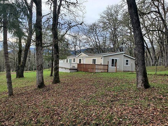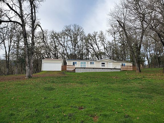 3 bedroom/2 bathroom manufactured home on 2.5 acres. Detached 2-car garage. Deck with southern exposure. New roof (2024). Room for animals, outbuildings, garden, etc. House is situated well off the road. Property served by Umpqua Basin Water Association.