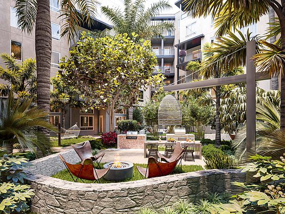 Reconnect with nature and your neighbors at Solana. Discover resort-style recreation at your doorstep with amenities designed to delight at every turn. Our lush central courtyard features inviting daybeds, fire pits, and options for both recreation and relaxation. The high vaulted ceiling in the fitness center allows for invigorating workouts with scenic views. Our Bark Park and Wag's Lounge ensure your furry friends feel right at home.