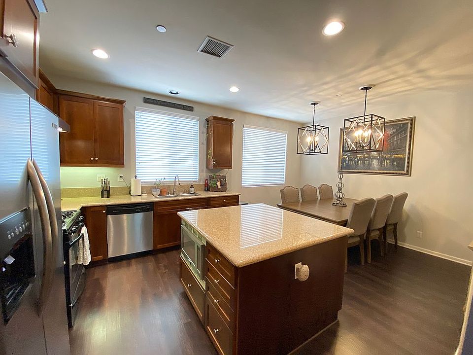 This charming Spanish condo has two bedrooms and two and a half bathrooms, it is in an immaculate gated community with remote and intercom system, with a direct access attached garage for two cars, community area, fire pit, double pained windows, balcony, interior washer dryer; gardener, outside cleaning, and pest control. Stainless steel refrigerator, microwave, gas stove, and dishwasher. Granite kitchen counters, hardwood floors, custom paint, and faux marble in the bathrooms.