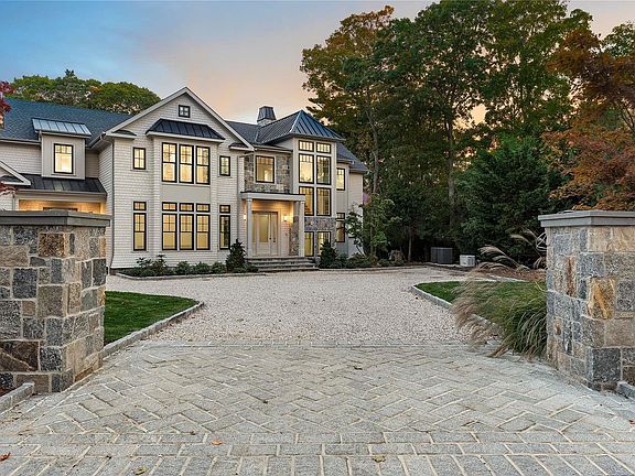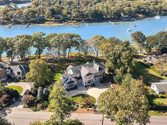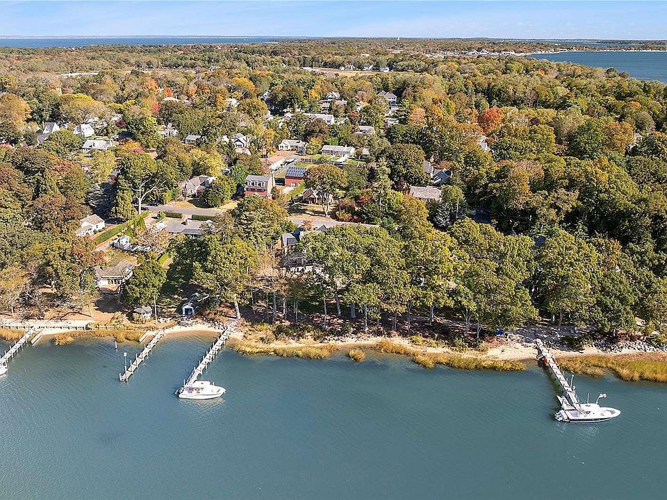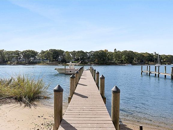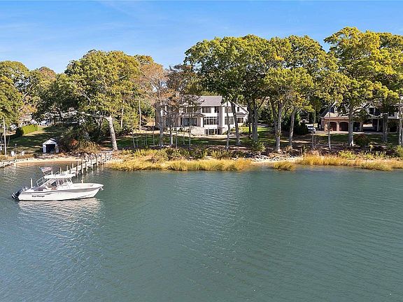 Welcome to a stunning, one-of-a-kind waterfront home in the highly sought-after hamlet of Southold. This custom, new construction, modern residence is perfectly situated on Town Creek, featuring 160 feet of waterfront and expansive views of Peconic Bay. It includes a private 6' x 20' floating dock connected by an 82' Trex catwalk. Constructed with meticulous attention to detail, this home is built to last. It boasts high-end structural integrity, energy-efficient elements, and luxurious finishes throughout its sleek, open-concept design, encompassing approximately 4,500 square feet of living space. The residence is flooded with natural light and showcases architectural features such as floor-to-ceiling windows, floating staircases, a bluestone-covered patio, and a walk-out lower terrace. The modern custom kitchen is adorned with ceiling-height cabinetry, luxury appliances, marble countertops, and porcelain inlays. The great room is anchored by a gas fireplace surrounded by textured porcelain. The upper-level primary suite includes a private balcony, while the main-floor junior suite offers private access to the backyard. The lower level adds 2,000 square feet for the new owners to personalize, along with a bonus space on the top floor. The offering is complete with mature landscaping and the potential for a water-facing pool. This residence is located in the heart of the North Fork, with close access to Founders Landing Beach, wineries, farm-to-table dining, and the vibrant town atmosphere.
