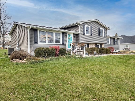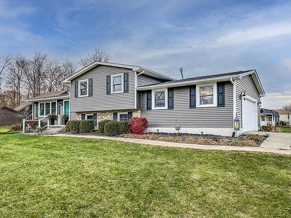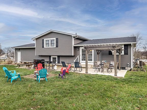 Lake Life is yours when you move into this Choctaw Lake, off water, home sitting on a double lot! Completely updated, and move in ready, the home offers 3/4 bedrooms and 2 baths. The main level features the desired, open floor plan and is great for entertaining. The kitchen was updated in 2018 and offers quartz countertops, an eating bar, built in desk area and all the kitchen appliances, range, refrigerator, microwave and dishwasher, new in 2018 convey with the home. Off the dining area is a set of French doors leading out to an amazing outdoor space. This outdoor space adds additional square footage in the warmer months, and features a 22x10 patio, with a pergola, and a nearby firepit. Another bonus to the property is the 26x12, heated outbuilding with a finished interior and features a bar, bar area and is currently set up as an outside family room. Furnishings in the area are negotiable. Back inside the home, the second level features an owner's suite and an updated owner's bath, along with 2 additional bedrooms and a second full bath. The lower level has a family room, with a gas fireplace, and the 4th bedroom. The second level bedrooms all have brand new carpeting. The home has a partial basement, great for storage, and an attached 2 car garage. Other updates to the home include Roof/gutter/siding (2016), HVAC (2014), water softener (2013), water heater (2011) and 19' of blown in insulation. The home is totally electric, but the gas line has been ran to the home for future use. The electric averages $110 per month, sewer bill is $100 every 3 months and the water bill runs $30-$40. Choctaw Lake is minutes from Interstate 70 and is a short 30 minute drive to Columbus. Leave the big city and come home to vacation living.