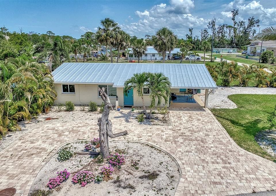 Welcome to your piece of Old Florida Style Paradise! This Adorable 2/2 is fully furnished and sold turnkey and ready to move into, so be sure to bring your flip flops and snorkel! Entering this sunny, tastefully decorated home and you feel like your in a beach cottage yet less than 3 miles from the beach and just across the street from the beautiful waters of Lemon Bay. This home is located on large corner duplex lot but currently has only a single home on it. You are only one lot away from waterfront with breezy afternoons and access to boat ramps galore! Like to stay low key? Stroll across the street to "The Backyard" at Skips Marina, head for the newly expanded tiki bar, grab a beer & a bite and enjoy live music while watching the boats and daily catch of the day come in and of course, enjoy one of our fantastic sunsets... which NEVER get old! It's a quiet neighborhood that has the rare charm and ability to live a unique lifestyle. Don't forget, you will be less than 3 miles or 8 mins to the beach and in the entertainment zone of Manasota beach where you can find fine or causal dining, live entertainment and of course, Englewood Beach. Let me tell you about some of the important updates: New Hurricane Windows, New Paver driveway, Metal Roof was installed 2018, HVAC system was replaced in 2017, irrigation was installed in 2016 and it has a keyless entry installed in case you are considering using it as a seasonal or full time rental home to generate extra income. The home has all wood laminate flooring with tile in the kitchen and bathrooms. There is an large inside laundry room with a washer, dryer and sink along with extra space for beach toys and storage. The breezy carport has an extra shell rock driveway to the side that is perfect for Boats, RVs, work trucks or if you thought about adding on another unit, that space will work into the big plan. Come take a look at this sunny, comfortable and income producing potential home with lots of possibilities to live that Florida Lifestyle that is so sought after.