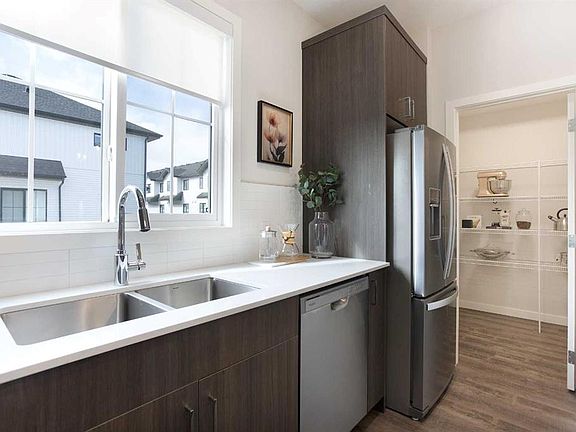 Step into this beautifully crafted 3-bedroom, 2.5-bathroom townhome, where contemporary design meets thoughtful functionality. With a spacious floor plan and soaring 9' ceilings, this residence offers a light-filled, open atmosphere that enhances every room. The attached double-car garage provides generous space for both your vehicles and storage needs, making daily living a breeze. Inside, the home features a variety of modern upgrades. The kitchen is a true highlight, showcasing elegant quartz countertops, a full suite of drawers for organized storage, high-end stainless steel appliances, and soft-close cabinetry for that extra touch of refinement. On the main level, you'll find durable vinyl plank flooring, while plush carpeting and 8lb underlay in the bedrooms create a cozy, inviting retreat at the end of the day. The private balcony is an ideal space for unwinding or entertaining guests, adding another layer of versatility to this home. Beyond the interior, the property offers a vibrant community atmosphere, perfect for an active lifestyle. Enjoy access to a serene greenhouse and beautifully maintained garden spaces—perfect for nature lovers or anyone who enjoys a little gardening. This townhome’s location is equally impressive, with quick access to Seton and Mahogany, offering nearby shopping, dining, and recreational options. The exterior of the home is designed for durability and low maintenance, featuring a stylish mix of vinyl siding, fibre cement panels, and asphalt shingles. Thoughtful lighting selections throughout the home add to its modern appeal, blending style with practicality. With the added benefit of AC rough-ins already in place, this townhome is ready to offer comfort and convenience no matter the season. A perfect balance of luxury, functionality, and community, this home truly exceeds expectations.