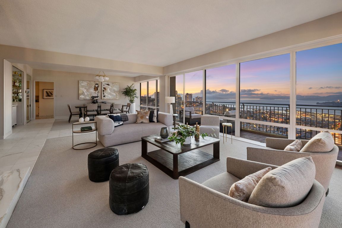 With large glass walls on three sides, this extraordinary, three-bedroom apartment features 270-degrees of views from Mt. Tam to downtown - capturing Sausalito, Alcatraz, Coit Tower, San Rafael & Bay Bridges, Berkeley Hills/Mt Diablo, and the dynamic urban landscape of the Financial Center. The layout includes open living room and ...