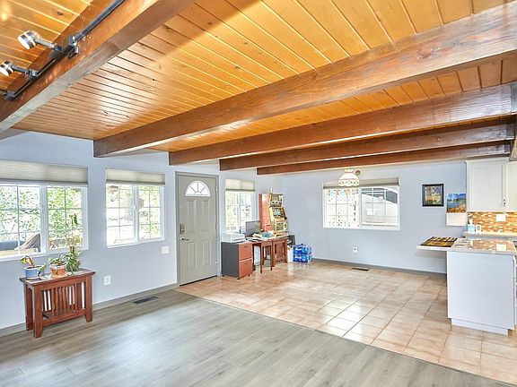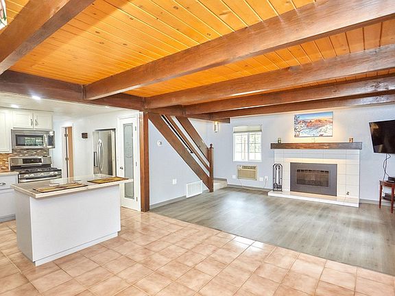 Enjoy the fresh mountain air from you porch, deck or stamped concrete patio. Kitchen and bath have been remodeled one year ago. newer Dual Payne windows done stairs, New carpet in bedrooms along with ceiling fans. Window a/c in living room and master. 2 car over sized garage with 2nd story storage, plus the lot size is huge, room for RV parking. Newer roof too!! This home is a must see.