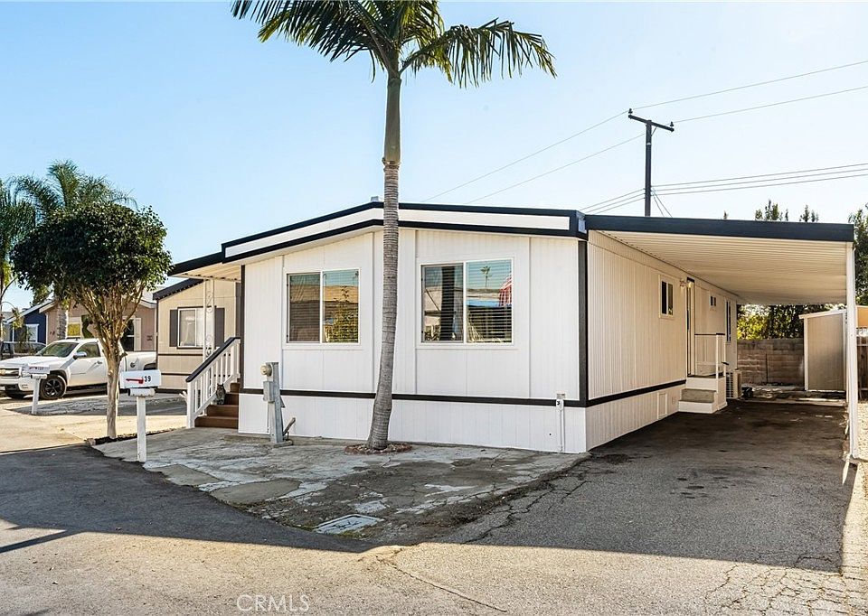 Welcome to this fully remodeled 3 bedroom, 2 bath manufactured home located in the tranquil community of View Park Mobile Estates. This beautifully updated residence showcases a modern design with high-end finishes, making it the perfect place to call home. Step inside to find an inviting open living room with a cozy fireplace that seamlessly connects to the kitchen and dining area. The kitchen boasts elegant quartz countertops, a stylish tile backsplash, stainless steel appliances, and shaker cabinets. Additional features include laminate flooring throughout, recessed lighting, a convenient indoor laundry area, mini split AC, sleek black and white exterior paint, bedroom closets with built-in storage, and an attached carport with parking for up to three vehicles.