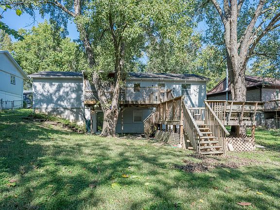 Beautiful lot in Rock Bridge and John Warner School Districts. Ranch style home on full walkout basement. Has 2 official bedrooms with a 3rd on the main level being used as a closet. Full basement has 2 additional non-conforming bedrooms, an open area for an office/rec room, and a family room. Great place for entertaining on the huge deck. Offers a screened in porch with a fully functional hot tub. Home has a hydrothermal ground source heat pump. 30-year architectural shingles installed in 2013, Weatherization completed in 2012 (windows caulked, added attic insulation, 2'' foam boards placed in basement). Shed is built on a solid platform and tied down. French drain system. Washer, dryer, and refrigerator convey.