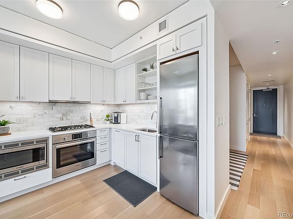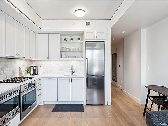 Conveniently situated, you have easy access to transportation to Denver International Airport (37 minutes door-to-door), Denver's largest Whole Foods, and an abundance of acclaimed dining establishments. HOA dues cover gas, water, trash, common area maintenance, structural insurance. Nominal charges for electricity and fiber-optic high-speed internet are billed separately. Parking spaces in the attached garage are available for lease at $235 per month, completing the epitome of luxurious living.