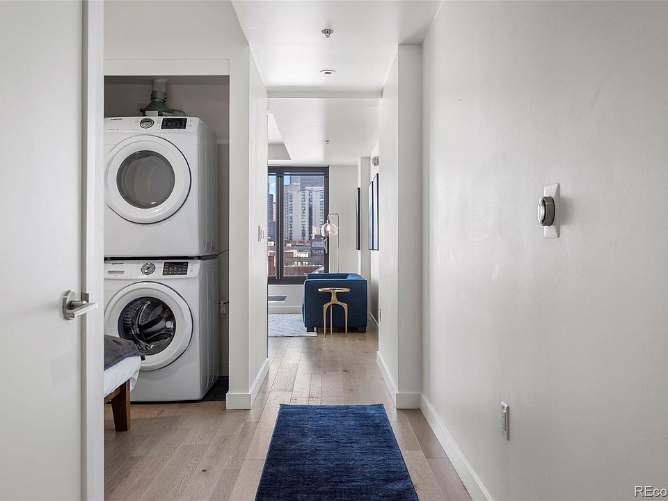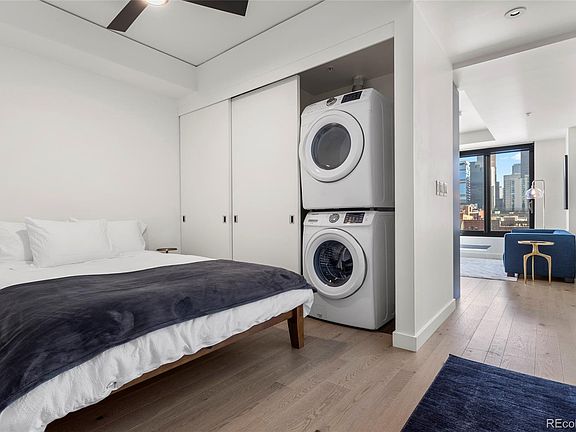 Work and play in Denver's most sought-after high-rise, The Coloradan. Located in the heart of Union Station, this FULLY FURNISHED home offers an abundance of natural light, breathtaking views and automated blinds! Steps from Whole Foods, light-rail and bus, 16th St Mall Ride, and Commons Park makes this the perfect home! The kitchen is complete with dish-ware and offers stainless appliances, gas range, soft-close solid maple cabinets and quartz countertops. The spacious urban bedroom has a queen size bed, fresh linen, and custom closets. Included is an in-unit high efficiency washer/dryer. Step into the rich bathroom which features Calacatta marble and quality finishes. Amenities include 24-hour staffed desk and fitness center, 18th floor amenity level with outdoor pool, hot tub, fire pit, chef's kitchen and entertaining club room. First-floor retail: A-Line high-end women's boutique, Pure Barre Fitness, Blo Blow Dry Bar, Kaffe Landskap coffee, Ghost Donkey Mezcal Bar, and Union Hall, a community arts center. Just steps from Union Station, Whole Foods, light-rail and bus, 16th St Mall Ride and entertainment, life does not get more convenient than this!