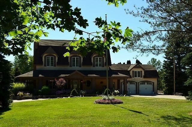 Historic Barn to Beautiful Country Estate. This remarkable transformation sits on 10 acres of rolling countryside with its own freshwater spring. The spacious wrap around porch provides sweeping views and is ideal for entertaining or just relaxing. There are three levels for living which include 4 bedrooms, 3 full baths and a wood burning fire place. The front entry greets you with a grand curved stairway with custom wrought iron railing. The well designed kitchen has Merrilat cabinetry and Madagascar Granite with a large island and stainless steel appliances. The walkout basement features original stonework, a media center, 4 actual working antique slot machines and a guest bedroom. This basement walks out onto a spacious hand-laid brick paver patio which offers direct access to the backyard and finished clubhouse with utilities and wood stove. The property also includes a 2 car attached garage as well as a 2 stall horse barn.