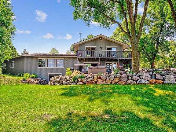 Nestled on the picturesque shores of tranquil Hunt Lake, this stunning ranch-style home embodies the perfect blend of rustic charm and modern elegance. Surrounded by the serenity of nature, it offers a retreat-like property that welcomes you with open arms. Enjoy the 150+ feet of lake shore from your own putting green, hot tub, or from a lawn chair on the deck/ firepit. Step inside & be greeted by an open-concept floor plan that seamlessly connects the living spaces, creating an inviting atmosphere. The interior design blends rustic elements with modern finishes, evoking a sense of warmth and comfort. Vaulted ceilings with exposed wooden beams, with a mixture of unique details throughout the home, add character and create a memorable ambiance. The heart of this lake home is a gourmet kitchen, equipped with top-of-the-line finishes, custom cabinetry, and a generous center island. This culinary haven is perfect for entertaining. Say hello to panoramic views & captivating spaces. WOW!