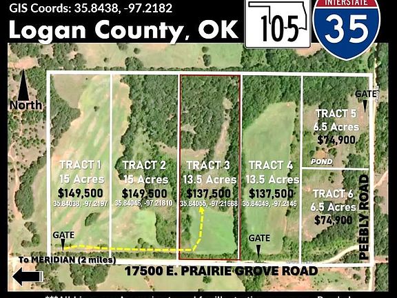 Premier Desirable Logan County Land - Private Elevated Homesite to the back overlooking an alluring 5-acre flatland perfect for a shop, additional home, barndominium, ranch/farm or equine arena. This tract is naturally set up for a wonderful ranchette surrounded by creek to the North, full trees on all sides and excellent level changes. You and your designer/home builder will love this site as it is naturally set up for 1 or more homesites. There is power at the street (E Prairie Grove Rd). Well and Septic/Aerobic by Buyer. Property has perfect amount of grazing, gentle slopes, and tree cover and privacy for a perfect homesites! There are 6 tracts so more is available on either E or W side. This is ideal location in the country just 35 mins from Edmond, 12 mins from Guthrie, 25 mins from Coyle, area is full of beautiful homes with an equine theme in the area. Enjoy the peace and rural charm of country living without having to sacrifice any of the modern conveniences and amenities of city life. With its convenient location, you can enjoy the abundant wildlife and beauty of nature while still maintaining easy access to all the entertainment, shopping, and dining options of both Edmond and Guthrie. Create your own rural paradise just minutes from one of Oklahoma's hottest housing markets! GIS Coords to Gate: 35.84043, -97.21582 - watch for directional and Agent Signs.