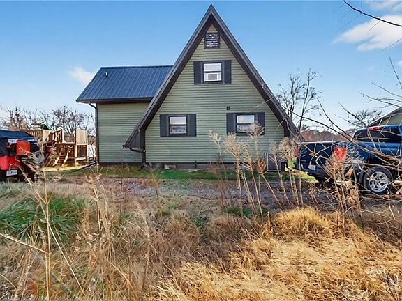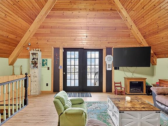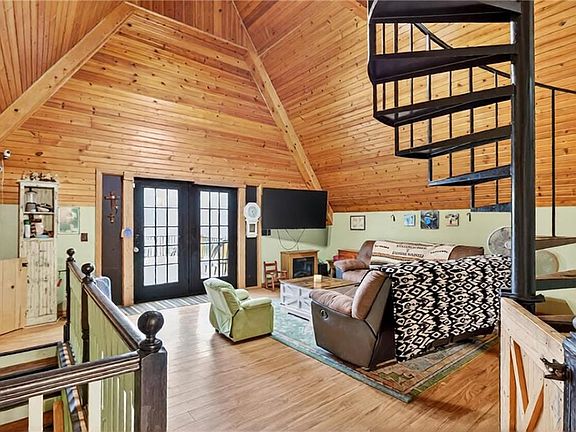 Experience A-frame charm combined with modern improvements across this 1.9-acre property that includes a full guest house and inviting outdoor amenities. A great setup for multi-generational living or extra space. Located in a convenient rural corridor between Nevada, Missouri and Fort Scott, Kansas. The primary A-frame style home, built in 1992, offers 1,484 sq. ft. with a warm and inviting loft layout. As you enter, you’re greeted by a striking vaulted wood ceiling and an open living space filled with natural light. The kitchen sits just off the living room and includes updated appliances, making daily living and entertaining a breeze.