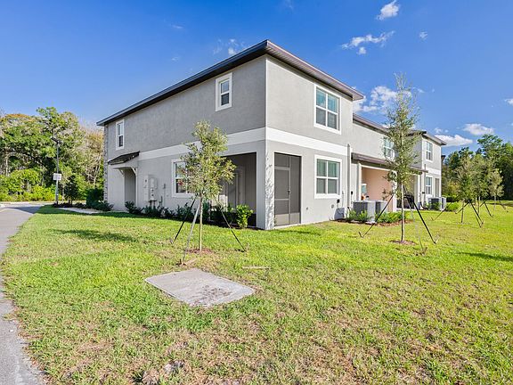 Welcome to your brand-new end-unit townhome in the highly desirable Angeline community! This spacious 3-bedroom, 2.5-bathroom residence offers modern living with thoughtful design throughout. The open-concept main floor features a bright living and dining area, and a well-equipped kitchen with stainless steel appliances, a breakfast bar, and ample counter space perfect for entertaining or casual meals. Enjoy the privacy of a covered and screened-in porch that overlooks a peaceful conservation area with no rear neighbors. The home is ideally situated next to a scenic paved biking and walking trail. Upstairs, the primary suite offers a generous layout with a large walk-in closet and a private ensuite bath. A versatile loft area separates the bedrooms ideal for an office, playroom, or media space. Two additional bedrooms share a full bathroom, and the laundry room (washer and dryer included) is conveniently located on the same level. (note washer/dryer to be maintained by tenant) Additional features include a 1-car garage plus driveway parking, with extra parking available nearby for guests. The Angeline master-planned community spans over 6,200 acres and is designed to blend innovation, nature, and healthy living. Future amenities include a crystal-clear lagoon, community farm, STEM magnet school, and the upcoming Moffitt Cancer Center Life Sciences Campus. Residents currently have access to the Mirada Lagoon, and can enjoy miles of hiking and biking trails part of a planned 100-mile trail system with more than 3,600 acres of green space.