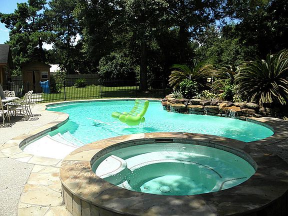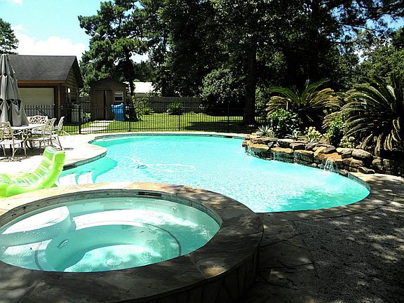 Wow! Very rare find wonderful country home on 2 plus acres.Serene peaceful setting yet minutes to 290,249,and the new Grand Pkwy.Home features huge rooms,updated kitchen with ss appliances, both front and back full length porch.Authentic log cabin with natural wood floors, double pane windows Two masters one up one down.Beautiful wooded 2 plus acres plus a wonderful pool, spa, home office. Huge shop/ barn. No restrictions work from home.The possibilities are endless.