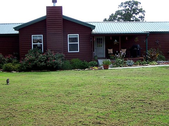 HUNTERS' DELIGHT - Very unique home, started out as a mobile home, all that is left is the metal sub frame. The rest has been transformed into an awesome log cabin offering over sized rooms, living room w/ wood burning fireplace, spacious Master bedroom w/ french doors to sunroom. 40 Acres of timber & pasture. The timbered ground is heavily wooded, with creeks & great for hunting. The pasture has new fencing for livestock. All this & a 30 x 50 shop/garage w/3 overhead doors & concrete floors.