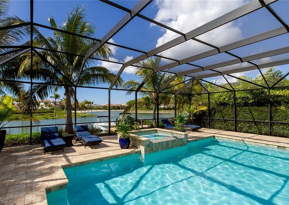 Located in the magnificent Miromar Lakes Beach and Golf Club, the #1 Community in the U.S., this stunning home provides unparalleled indoor-outdoor living with exquisite lake views and a private boat dock. Boasting a beautiful open floor plan with high end finishes, a gourmet chef's kitchen with gas burner stove, large island, and granite countertops. On the ground floor is the master bedroom and a guest bedroom, and upstairs is an additional bedroom and large family room with a screened-in balcony. The huge screened-in patio is an impressive outdoor living space featuring a stunning pool and spa, covered seating area, and large outdoor kitchen with built-in grill, granite countertops, and bar seating. Miromar Lakes offers five-star resort style amenities, a 700 acre freshwater lake, 3 miles of private white sand beaches lined with cabanas and hammocks, a championship golf course, tennis, full-service salon and spa, two restaurants, infinity pool with poolside service, hundreds of events throughout the year, and much more. Located close to shopping, dining, entertainment, and the Southwest Florida International airport. Come see why Miromar was voted the #1 Community in the U.S.!
