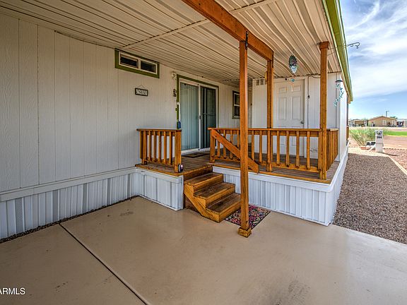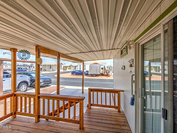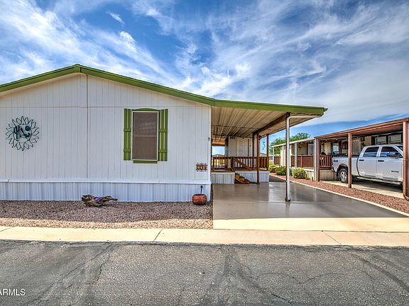 Welcome to this 2006 Cavco Litchfield 3 bedroom 2 bath home on a golf course lot with views of the White Tank mountains. This home features plenty of cabinet space and a skylight over the kitchen island, spacious living room, dining area with build in china cabinet.