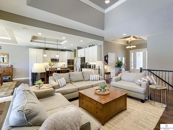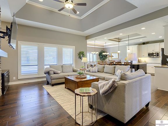 Stunning ranch home situated on a quiet street featuring an open floor plan perfect for entertaining friends and family. Plantation shutters throughout set the tone while warm, earthy stone and wood finishes complete the atmosphere. The 10' ceilings and large windows create a lofty, open feel. Custom details throughout. Solid surface preparation areas, stainless appliances and a large center island along with ample amounts of cabinetry make this kitchen every chefs dream. Adjacent to the kitchen dining area is a large covered patio with a hot tub which overlooks the spacious backyard and a basketball court. All five bedrooms are spacious and the luxurious primary bath offers a jetted tub and walk-in shower with a rain head fixture. Recreation abounds in the LL with a rec room, wet bar, two of the five bedrooms and a 3/4 bath. Plenty of storage throughout and the attached garage offers space for 5 cars so bring your toys! All electronics and appliances stay. Hot tub is negotiable. NICE!
