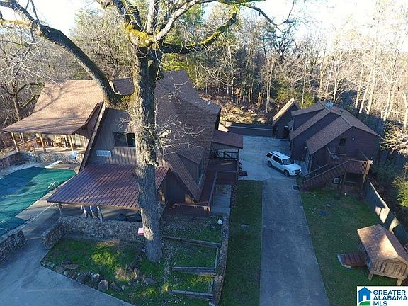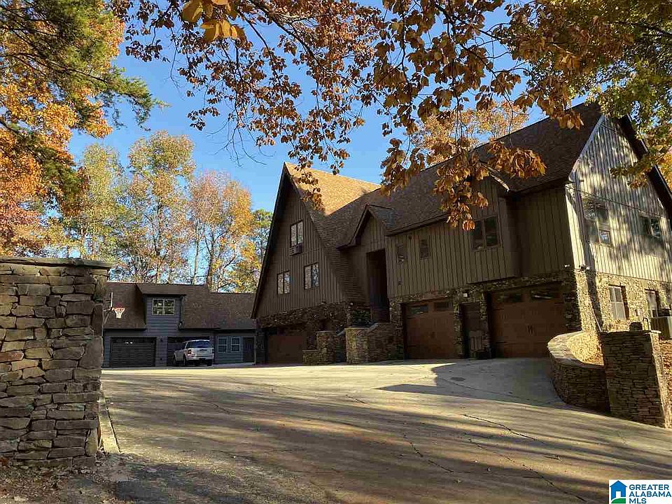 A Private 5000+ sq ft Mountaintop home on 7+/- Acres. Residence located less than 1 mile from I65 in Alabaster, Alabama. This amazing Chalet-style home features 5 bedrooms in the main house with 2 Master Bedrooms and 4 1/2 bathrooms. Features include 2 solid copper bathtubs, granite, stone, vintage brick, barn wood, 100 year old pine and ceramic tile throughout. It has a detached (Man Cave) garage with a full apartment (adding additional square footage to total HVAC area) and vintage style garage designed to look like a vintage gas station. Garage parking for 7 vehicles. It also features a large in-ground salt water swimming pool with a stone courtyard, covered observation deck with an amazing stone fireplace - outdoor entertaining at its finest. This home has been completely remodeled and includes a $225,000+ addition. It’s a must see!