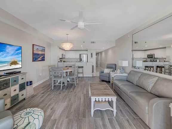 Imagine owning a condo that grossed over $100,000 in 2024 -- and waking up every morning to the sight of turquoise Gulf waters. Welcome to Sterling Shores #1010, a stunning AIRBNB GUEST FAVORITE perfectly perched in the middle of the 10th floor for breathtaking, unobstructed views.This beautifully refreshed, turn-key condo features porcelain boardwalk tile, custom closets by Closet Solutions, and interior designer touches that give it a refined coastal feel. Step onto your private balcony and take in the salt air, or unwind in a space where comfort meets elegance -- all designed for effortless enjoyment and lasting value.Located within Sterling Shores' 8+ acre gated community, residents and guests enjoy world-class amenities including: