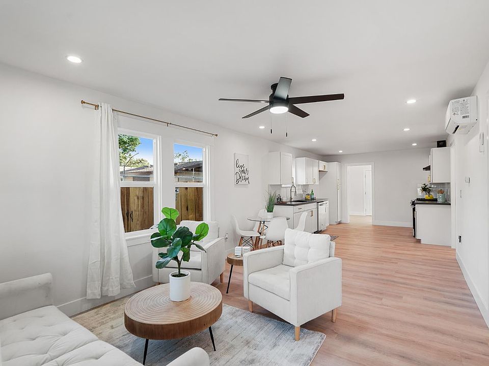 Welcome to this charming gem, featuring 3 bedrooms and a stunning bathroom highlighted by elegant custom tile and a one-of-a-kind floating vanity. The modern kitchen shines with style and function, while sleek dual-pane windows and a ductless AC system ensure year-round comfortcool in the summer and warm in the winter. A long driveway leads you to a beautifully finished detached garage, offering endless possibilities, and the generous backyard provides the perfect space for relaxation, entertaining, or future projects. Conveniently located near shopping, schools, and easy freeway access, this home is a rare find you won't want to miss!