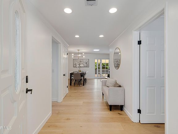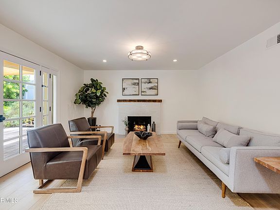 Welcome to this fabulous single story residence, thoughtfully renovated with designer finishes and a bright, open layout. Every detail has been carefully curated, from the French oak engineered hardwood floors to custom lighting and plantation shutters. The chef's kitchen impresses with stainless steel appliances, a professional-grade range, spacious center island with butcher block countertop, and crisp white cabinetry with glass-front accents. It connects seamlessly to the dining and living areas, where French doors lead to the backyard and a striking fireplace creates a cozy focal point. The primary suite is a peaceful retreat with abundant natural light, while the updated bathrooms showcase modern tilework, sleek fixtures, and frameless glass shower doors. Additional features include recessed lighting, raised foundation construction, and a whole-home water filtration system. Step outside to a private backyard oasis designed for entertaining and relaxation. Dine al fresco beneath the shade of mature trees, gather around the fire pit on cool evenings, or enjoy the natural landscaping with room to garden and play. This home offers the perfect combination of sophisticated updates and easy single level living, embodying classic California charm with a modern touch.