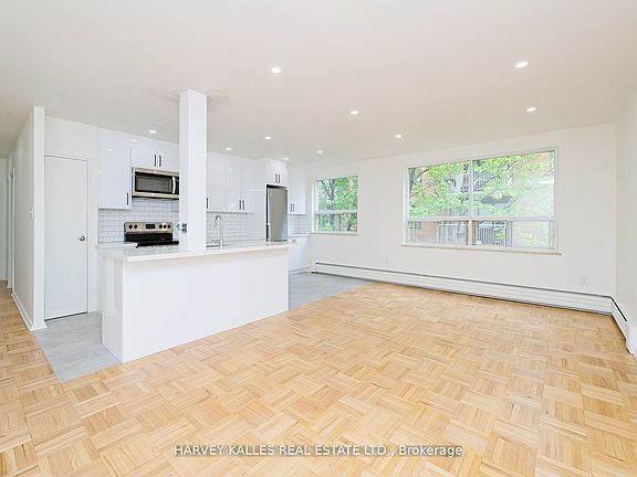 Large 2 bedroom apartment (approx 1000 sq ft), All utilities included! Enjoy this spacious, open concept apartment featuring marble counters, stainless steel appliances, loads ofstorage, large bedrooms and windows for lots of natural light. Boutique sized walk up apartment building Within walking distance of Golden Mile shopping area, schools, parks and numerous restaurants. DVP nearby, TTC bus stop on front step. Coined laundry in building. 1 parking available for $100/month. (Photos taken from previous listing)