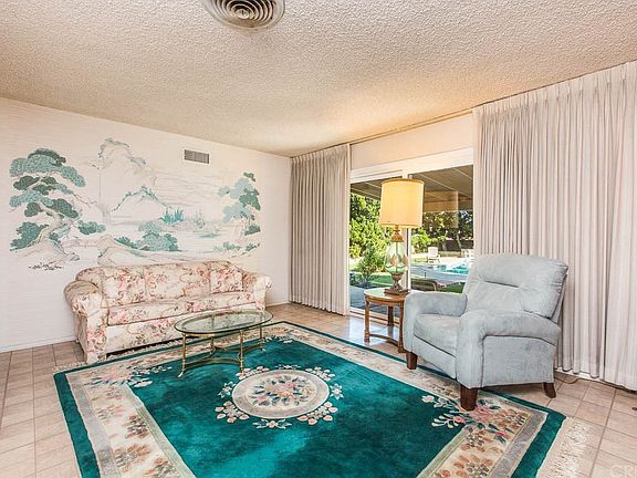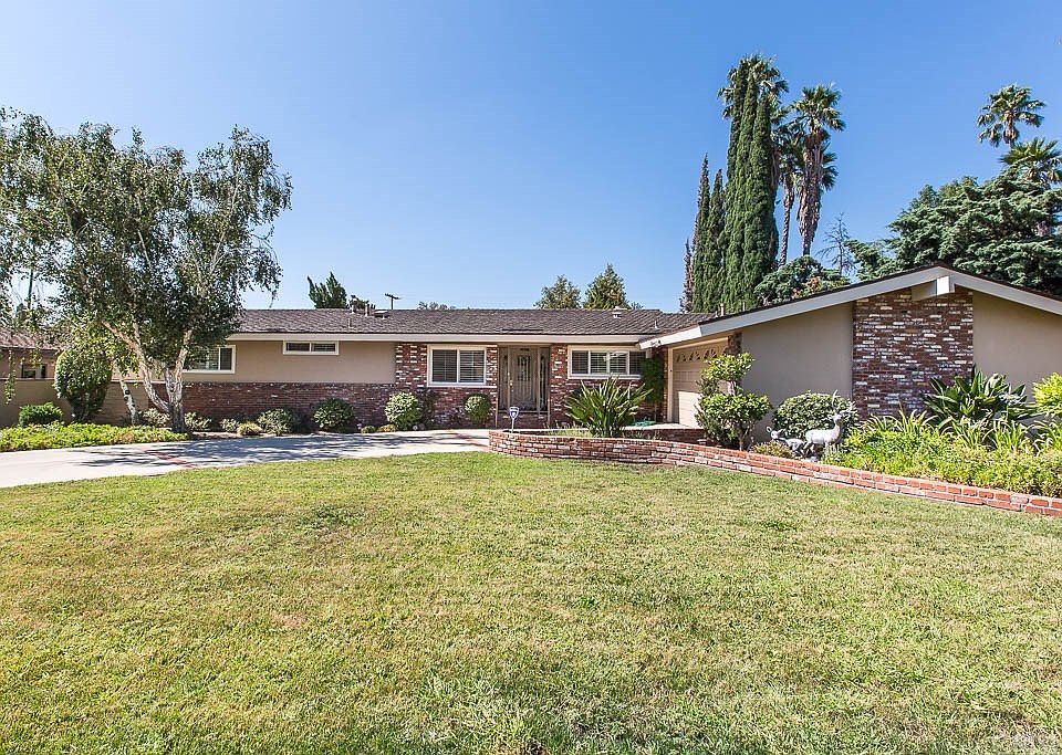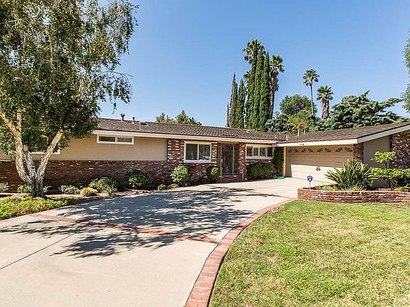 Sprawling one story ranch style home on quiet street in desirable Old Granada Hills and highly sought Charter GH High SD! Beautiful landscaping and covered front porch lend to the great curb appeal with brick lined concrete driveway. 4 bedrooms & 2.5 baths with 1,972 square feet on an approx. 1/2 acre lot! Formal entry with leaded beveled glass door and side lights opens in to the elegant living room with floor to ceiling fireplace and sliding glass doors leading to the backyard. Updated kitchen boasts center island with breakfast bar. The formal dining room is accented by a wet bar. Raised panel doors, plantation shutters & dual pane windows. Master bedroom with walk in closet and private 3/4 bath with updated tile. Remodeled hall bath has dual sinks and custom tile shower. Indoor laundry room. Entertainers yard boasts covered patio, ample grass in a park like yard, swimmers pool. Storage shed matches the house. Possible RV access.