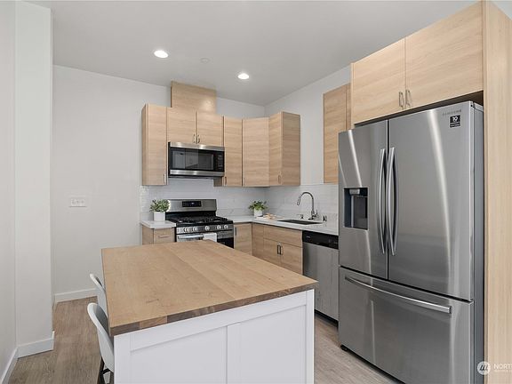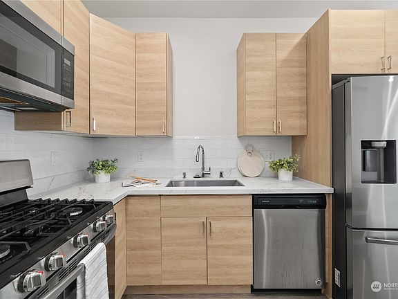 Welcome to Sunnyside Gardens! This 3 bed, 2 bath townhome is conveniently located minutes from Downtown Monroe and HWY 2/SR 522. The large 2 car garage takes you upstairs to the open main floor. The chef's kitchen is highlighted by the gas range and luxurious finishes. Off the dining nook and living room is a bedroom perfect for guests or WFH space. Notice the HP Mini Splits in each space! Walk upstairs to the primary suite where you'll find your sanctuary, complete with full ensuite bath. The generously sized secondary bedroom has easy access to the second full bath down the hall, and laundry closet with washer/dryer to convey. The community offers a playground and walking garden path. Pre-inspected!