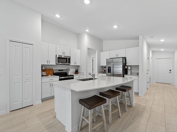 Welcome to this beautifully, 3-bedroom, 2-bath home located in Angeline community of Land O' Lakes. This 2025 home offers a spacious open floor plan with tile flooring throughout the main living areas and primary suite, providing a clean and modern aesthetic. The kitchen features granite countertops, sleek cabinetry, and modern appliances, perfect for both everyday living and entertaining guests.