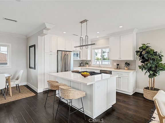This gorgeous open concept townhome was built in 2018. Walk up to your own gated front yard and private entrance with direct access to a 2-car garage and huge office space and a half bath. The second floor great room boast large windows which allow natural light to pour into the space. The kitchen has built-in Kitchen Aid stainless steel appliances, a kitchen island with a breakfast bar, and quartz stone counter tops. The great room’s stacking glass doors open to a large outdoor covered deck which extends the living area to the outside and is perfect for taking advantage of sunny Southern California's indoor outdoor lifestyle. The spacious great room also has a dining area, fireplace and half bath for guests. The third floor offers a large primary bedroom en-suite. Two additional bedrooms with vaulted ceilings, a full bathroom and laundry round out the third floor. Dark walnut hardwood floors, air conditioning and tankless water heater, double paned Milgard windows with custom blinds, ceiling fans are included amenities. Located in North Torrance, close to shopping, restaurants, freeways, and distinguished Arlington Elementary School.