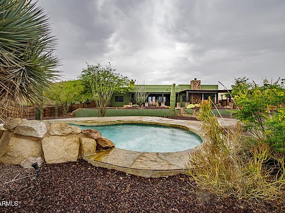 Rare Find: Beautiful Horse property on CITY WATER which is very unique in this area! The property is situated on 3.2 ACRES and features a newer ROPING ARENA with Priefert chutes, shaded turn outs and plenty of space to expand the horse facility. The home has a split floor plan with a very large Master Bedroom, with its own fireplace, large walk-in closet and access to the patio. The Open kitchen / family room offers plenty of space to entertain your friends. Step outside onto the extended covered patio and enjoy the stunning MOUNTAIN VIEWS or sit by the firepit. The backyard is beautifully landscaped with easy to maintain desert plants and the patio is newly tiled. The custom rustic fence gives you plenty of privacy when lounging at the pool. Near Verde River recreational area.