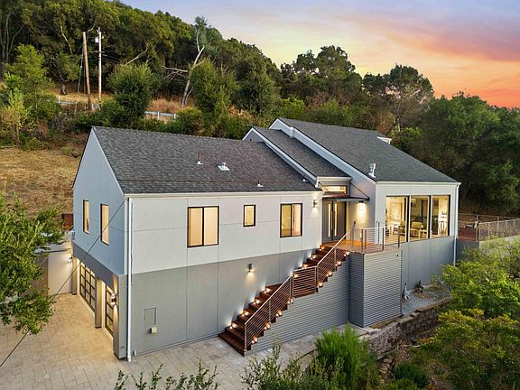 Set against stunning sunset views over the Los Gatos hills and city lights, this exquisite home blends modern luxury with ultimate comfort. The open, bright floor plan features commercial-grade custom windows, smooth level 5 walls, and high ceilings. The gourmet kitchen is a chefs dream, equipped with Wolf and Sub-Zero appliances, a steam oven, induction cooktop, quartz countertops, and LED-lit drawers. A seamless flow from living areas to large decks makes it perfect for entertaining. The master bedroom offers serene hill views, walk-in closets, and a spa-like bathroom with heated floors, a soaking tub, and Carrera marble. Each bedroom is designed for comfort with recessed lighting, ceiling fans, and large windows for abundant natural light. For efficiency, the home includes dual furnaces with new ducts and heated floors in the living and kitchen areas. The spacious 1.38-acre lot offers potential for a private vineyard or lot split under SB9. Outdoor living is enhanced with freshly oil-stained IPE decks, stainless steel railings, and expansive entertaining areas. Additional features include a 3-car garage, large storage rooms, plus office, and two laundry rooms. Minutes from downtown Los Gatos and top-rated schools, this home is the ultimate luxury retreat with unmatched views.