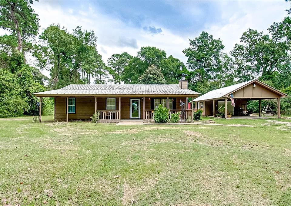 This cozy 3 bedroom 2 bath home is situated on its own private acre and is also close to I-69 and SH 99/Grand Parkway, providing convenience to nearby shopping and dining. The sellers have added many updates and improvements over the last three years including: central AC/Heat, new hot water heater, large carport with a small workshop and overhead storage area, new appliances, remodeled bathrooms, and more. The living room has a wood burning fireplace and vaulted ceiling. The kitchen/dining area has a breakfast bar that provides extra counter space and additional seating. Outside you'll find lots of green space, beautiful trees, a storage shed, and room for all your outdoor projects. Metal roof. No flooding, per sellers. Welcome home to the country!