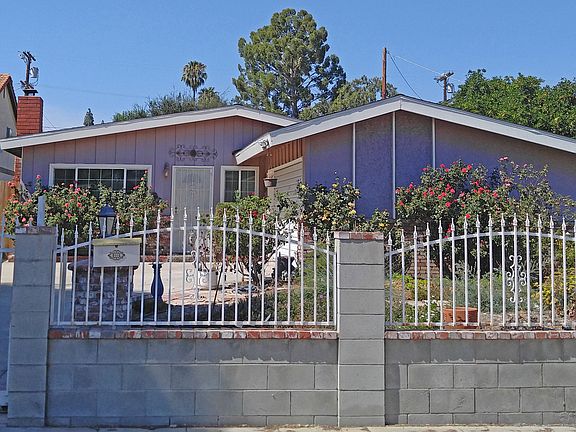 This gated property in highly desired "Old Granada Hills" area is absolutely adorable! This home features 3 bedrooms, 2 bathrooms, 1426 Sq.Ft. of living space, 2 car attached garage, and a 9,498 Sq.Ft. Lot. Enter this charming home into the large open living room with fireplace and high vaulted ceilings! Living room is open to the formal dining room and the kitchen. Very cute freshly painted kitchen with tile floor features skylight, gas stove, oven and breakfast bar (also with high vaulted ceilings). Laminate hardwood floors through the entry, hallway and Living room. There are three good size bedrooms! The master bedroom has its own bathroom with shower. Outside the formal dining room there is an enclosed lanai which leads to an outside covered patio. Air and heat are two years old and the roof is four years old. Huge back yard with lots of potential! Located in the prestigious Granada Hills Charter High School District. This home could be perfect for a first time buyer or investor!