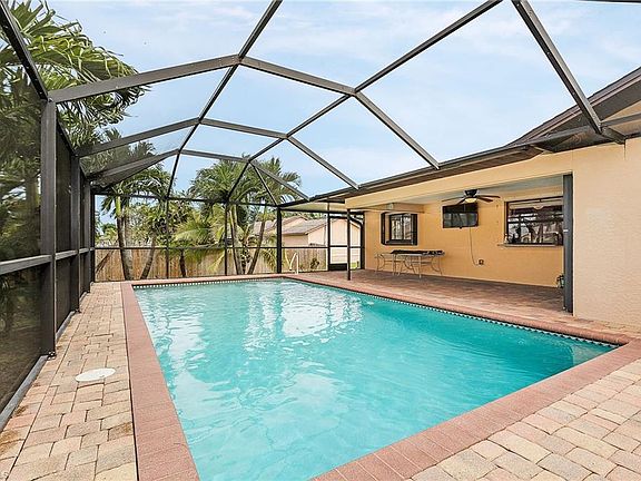 This POOL home is SPECTACULAR! This well-maintained home sits on an OVERSIZED lot, lined with several coconut-bearing palm trees! The interior of the home opens up to a spacious and inviting, split-bedroom floor plan with immaculate tile throughout and VAULTED CEILINGS! The large and open kitchen has real wood custom cabinetry and plenty of BEAUTIFUL GRANITE counter space! The lanai is entertainment central with a LARGE 15x30 POOL, and a mounted newer FLAT SCREEN T.V! There are also BRICK PAVERS throughout the EXTENSIVE lanai. There is even a pass-through from the kitchen window to a granite bar on the lanai, so the cold drinks can flow non-stop! No need to worry about storms. The hurricane accordion shutters close up the house in 20 minutes! Located on a lovely, quiet street within walking distance to the community center. Easy access to both US 41 and I-75 gives you the freedom to explore all Southwest Florida has to offer - beaches, great shopping, restaurants, and MORE!