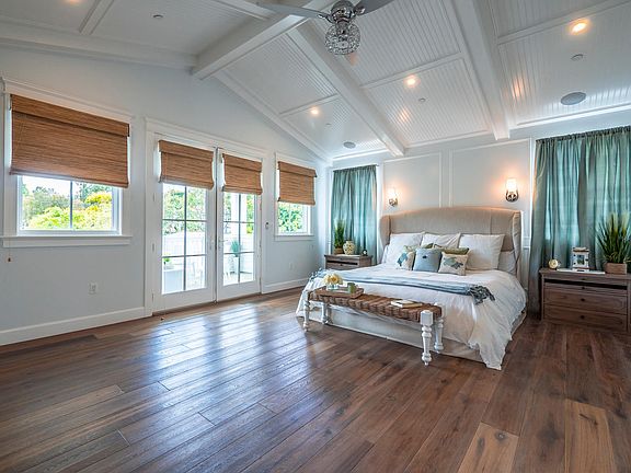 This Amestoy Estates newer Cape Cod epitomizes the southern California lifestyle. Gated with a circular driveway, enter to a dramatic two-story foyer with hardwood floors that extend throughout. Rooms include the living room with vaulted ceilings and fireplace, formal dining room, a refrigerated wine room, and home theater. Chef's kitchen with Calcutta marble center island, walk-in pantry, Miele coffee machine, and professional Wolf, Sub Zero and Bosch appliances. Adjacent butler's pantry includes a wine fridge and warming drawer. Kitchen opens to the family room with an entire wall of built-in entertainment storage, and fully retractable doors that open to rear grounds. 5 en-suite bedrooms (4 up, 1 down), plus office, powder room and laundry room. Fabulous master suite with vaulted ceilings, fireplace, fridge, walk-in closet, and large verandah. Spa bathroom with steam shower, soaking tub and dual vanities. Amazing grounds with slate decking, salt water pool and spa, fire pit, barbecue pavilion, loggia with fireplace, heaters and fans, outdoor shower, and pool house with half bathroom. Crestron smart home automation, security system with cameras, central vacuum and 3-car garage. Located in the award-winning Encino Charter Elementary School district and close to Ventura Boulevard shops, restaurants and houses of worship.