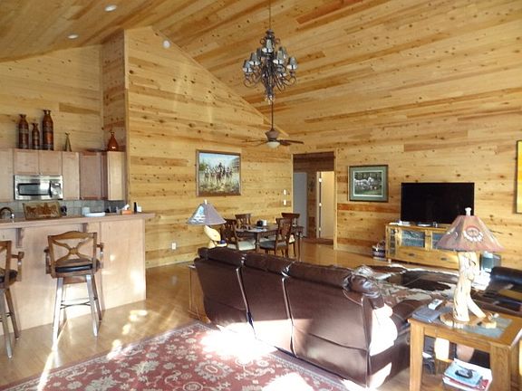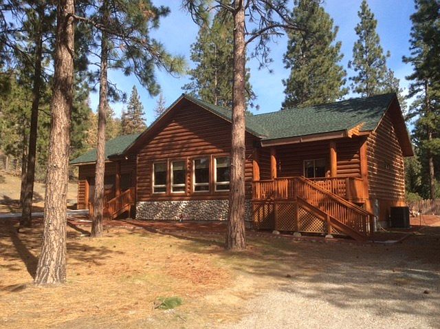 Stunning log sided home in immaculate condition nestled peacefully in the tall pine trees on an oversized corner property with plenty of space for RV or boat parking....what could be better!! Boasting 16 foot vaulted ceiling in the large open great room and 10 foot ceilings throughout the house, custom blinds, large fans, a propane stove plus an amazing jetted shower, tub combination. You must see inside this home to truly appreciate the fine finishes and wonderful ambiance.