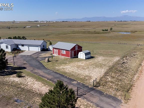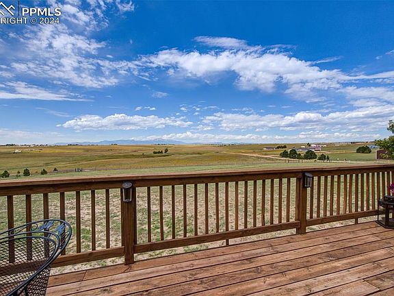 Welcome home to the perfect blend of country charm and stunning views with this 2,856 SF ranch-style home, set on 2.5 acres in picturesque Peyton. The property’s standout features include a well maintained fully fenced property with a move in ready CUSTOM WOOD FRAMED HOME with updated windows and doors, brand new roofs on all buildings, and a charming red barn-style well equipped 24' x 30' insulated workshop. The main level features large updated windows bringing in the front range views, a cozy living and dining room with vaulted ceilings, a fireplace and walk-out to the large 10' x 22' deck perfect for entertaining. The spacious kitchen overlooks the dining area and is equipped with a gas stove, recently refinished cabinets, new fixtures and tons of storage and counterspace including a breakfast bar. The main level hall leads to the master suite with beautiful views and a private bathroom featuring a dual vanity area and large walk in closet. Two additional generous sized bedrooms and a full bathroom finish out the main level. The finished basement extends your living options with an additional family room, two bedrooms, a half bathroom, and versatile storage and hobby areas. Outside, the fully fenced property provides plenty of space for gardening, pets, horses, recreation, and RV parking. Enjoy panoramic views of Pikes Peak from the expansive deck, and take advantage of the oversized 2-car attached garage. The detached workshop is a wood workers or hobbyist's dream. It comes fully insulated, wired for heat, has a concrete floor, an air purifier, built in work bench and roller table. Just 10 minutes from all of the shopping and restaurants now available in the Falcon area and 25 minutes to the Powers corridor. This home seamlessly combines modern comfort with rural charm. Don’t miss the opportunity to make this picturesque property yours!