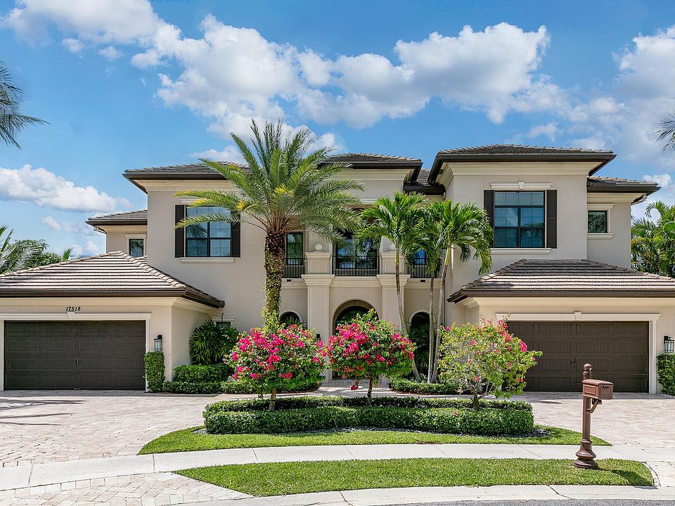 17518 Grand Este Way is located on an oversized, lakefront lot in the prestigious Grand Lake Estates section of The Oaks, Boca Raton. At over 7,500 sq. ft., this beautiful, custom-built GL Home has it all. In addition to six en-suite bedrooms, six full baths and two half-baths, the property also boasts breath-taking high ceilings, an open-concept double-island kitchen, family-room, formal dining room, club room with billiards table and video games, a seven-seat movie theatre with Dolby 7.2 surround sound, two laundry rooms (both upstairs and downstairs), four-car garage, and an upper-level den/loft. This residence comes fully furnished with a Decor package by Decorators Unlimited.